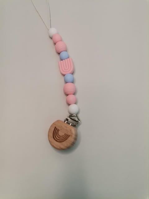 Kλίπ πιπίλας από ακατέργαστο ξύλο, χάντρες σιλικόνης από σιλικόνη για τρόφιμα BPA free.