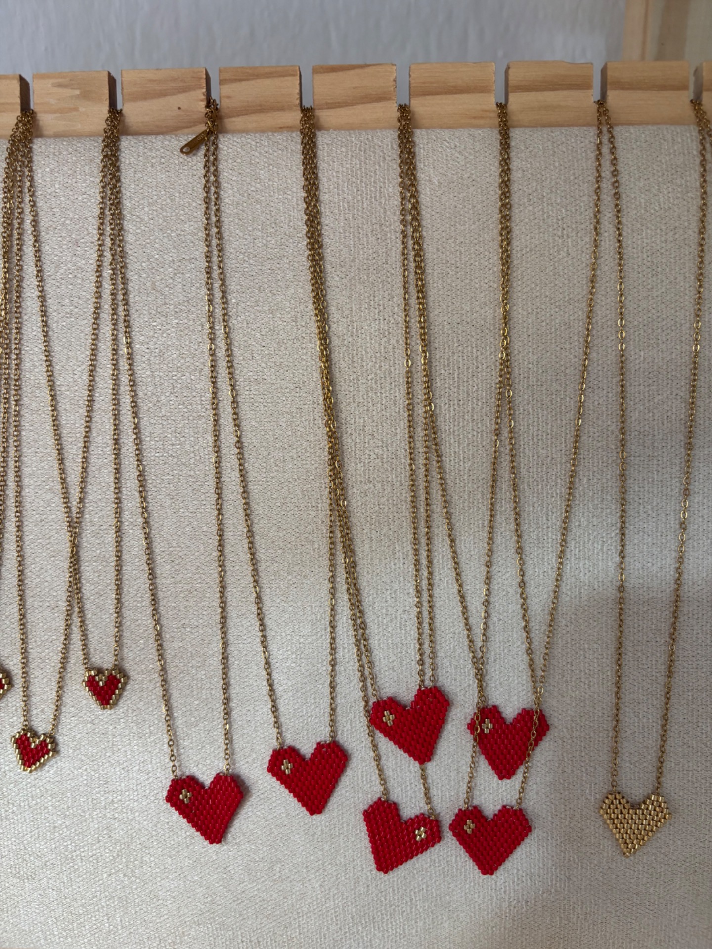Η μεγάλη κόκκινη καρδιά είναι χειροποίητη, πλεγμένη μία-μία χάντρα με αγάπη και προσοχή στη λεπτομέρεια. Ένα διαχρονικό σύμβολο αγάπης που μπορεί να φορεθεί κάθε μέρα.