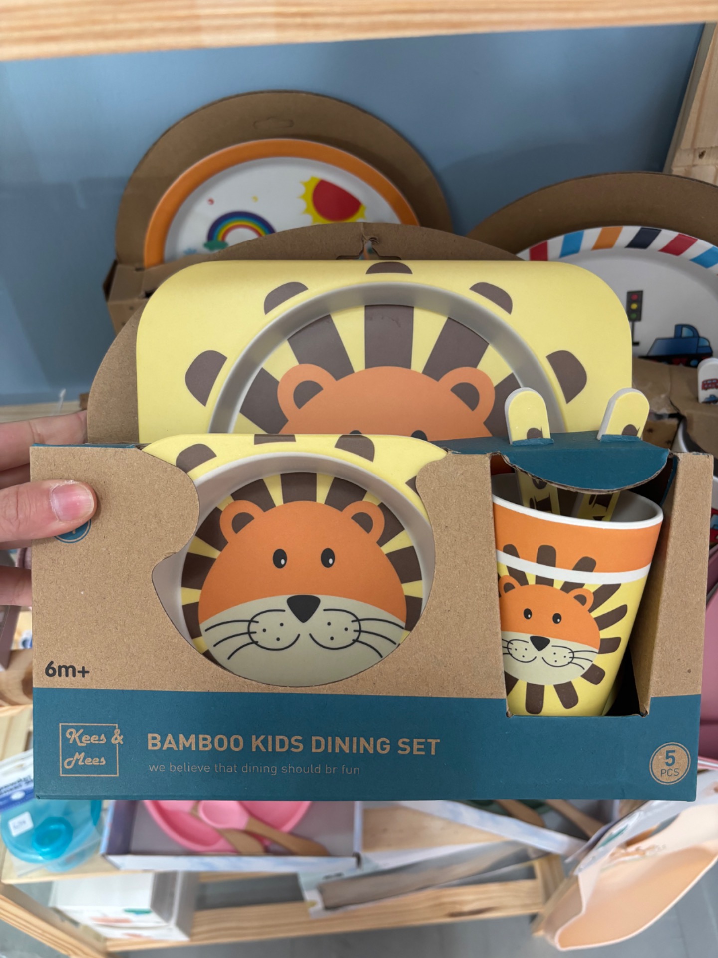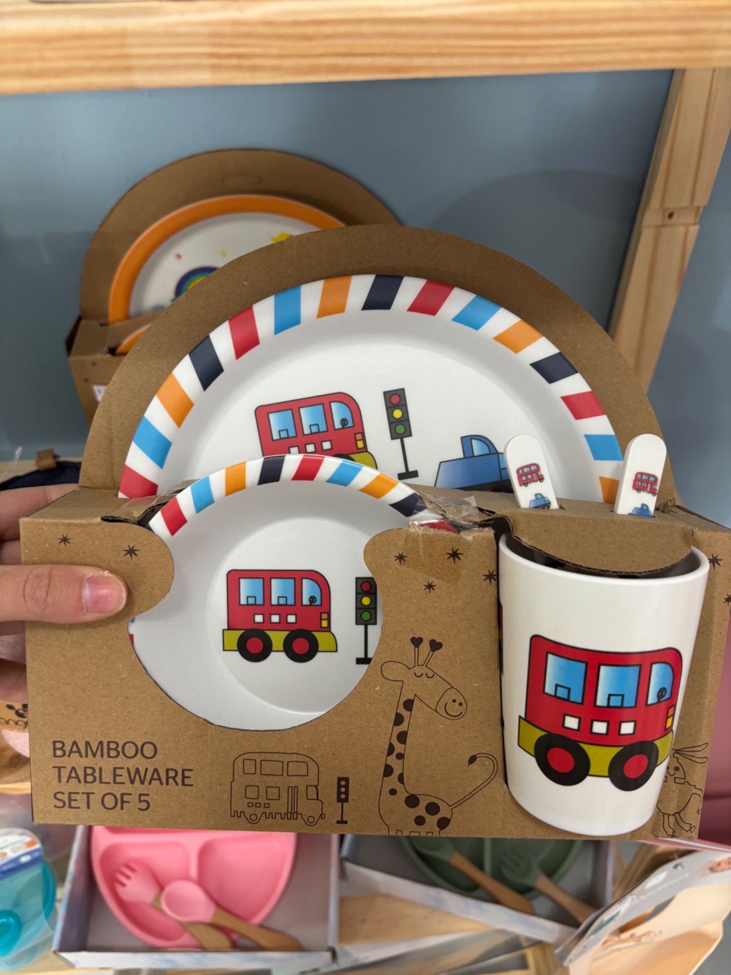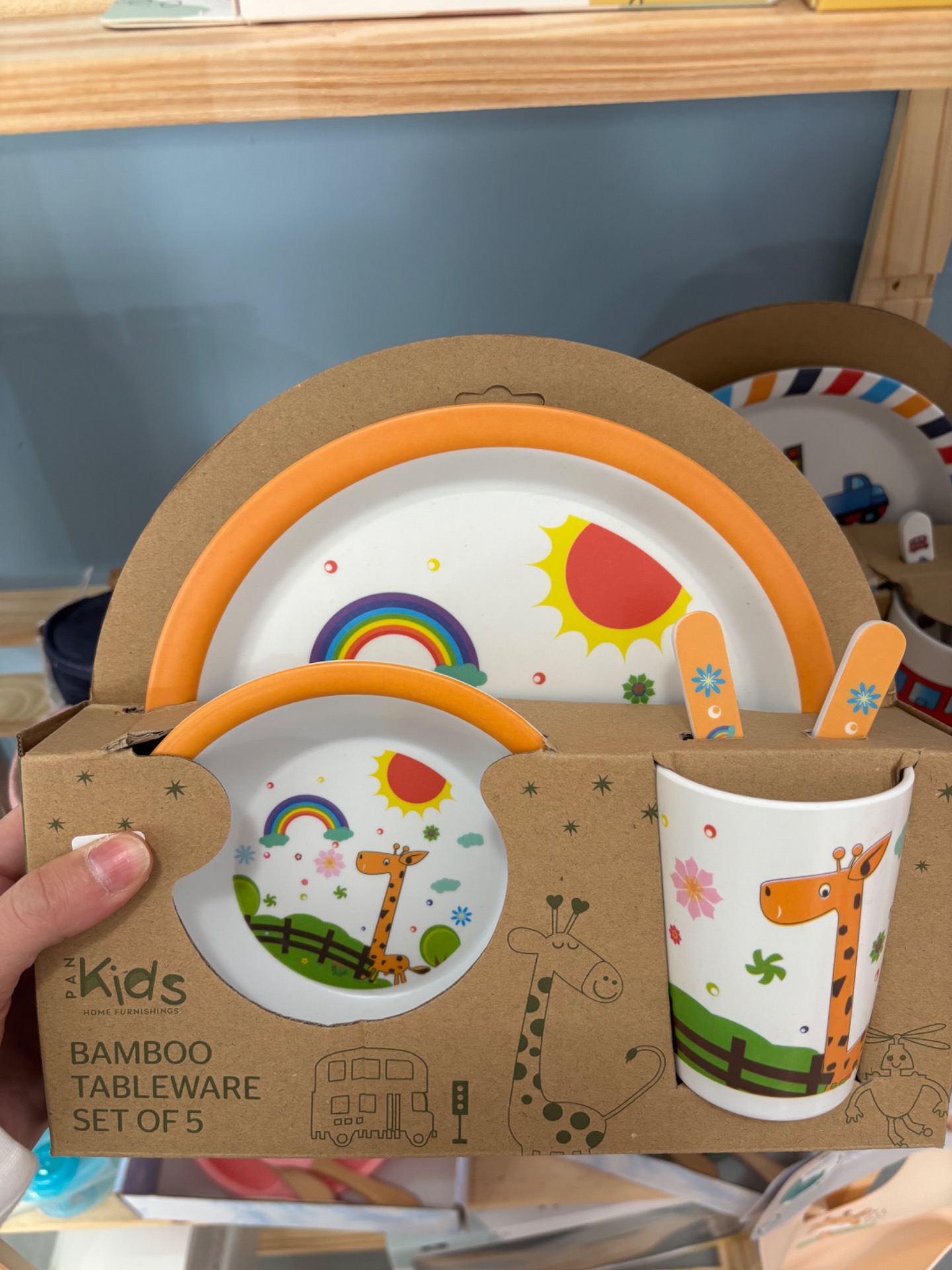Παιδικό σετ φαγητού κατασκευασμένο από bamboo, ιδανικό για την καθημερινή διατροφή του παιδιού. Το σετ περιλαμβάνει μεγάλο πιάτο, μπολ, ποτήρι, κουτάλι και πιρούνι, καλύπτοντας όλες τις ανάγκες για τα γεύματα στο σπίτι.