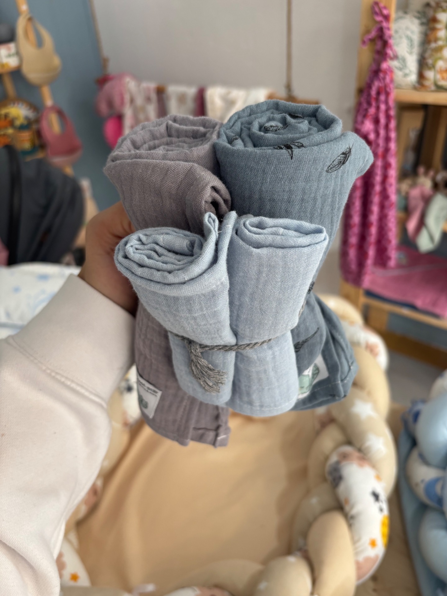 Το σετ περιλαμβάνει 2 μεγάλες και 2 μικρές πάνες, καλύπτοντας διαφορετικές ανάγκες: από αγκαλιά και σκέπασμα, έως καθαρισμό της περιοχής της πάνας και απαλό καθάρισμα του προσώπου όταν το μωρό ξεκινήσει τις στερεές τροφές. Η απαλή υφή της μουσελίνας δεν ερεθίζει το ευαίσθητο δέρμα και είναι κατάλληλη για καθημερινή, επαναλαμβανόμενη χρήση.