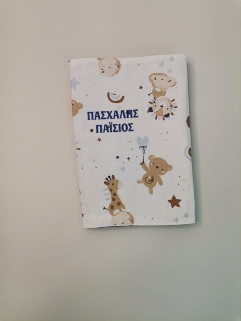 Χειροποίητη θήκη βιβλιαρίου για το βιβλιάριο υγείας του μωρού σας. Το βιβλιάριο υγείας αποτελεί ιδανική λύση για να διατηρήσετε σημαντικά έγγραφα που θέλετε να έχετε τακτοποιημένα και προστατευμένα. Κλείνει με ένα λάστιχο.