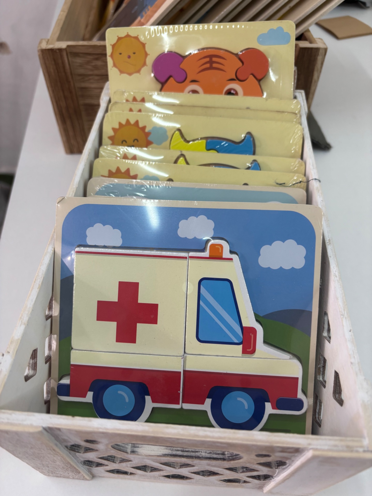 Ξύλινο εκπαιδευτικό παζλ με θέμα οχήματα και ζωάκια, σχεδιασμένο για να ενισχύει τη γνωστική και κινητική ανάπτυξη των μικρών παιδιών. Τα μεγάλα, εύχρηστα κομμάτια συναρμολογούνται εύκολα, βοηθώντας το παιδί να αναπτύξει τον συντονισμό ματιού–χεριού, τη λεπτή κινητικότητα και την παρατηρητικότητα.
